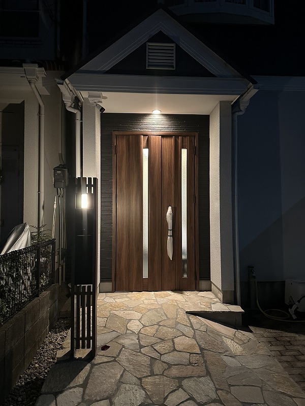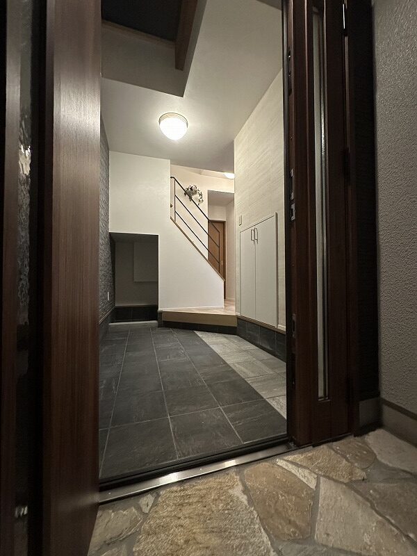 こだわりは、「玄関内に大型バイクを停められるスペース」への拡張です。単に広くするだけでなく、玄関ドアを交換し、外構にはバイクの出し入れがスムーズかつ、住宅のデザインを格上げする「デザイン性を持たせたスロープ」をプランしました。