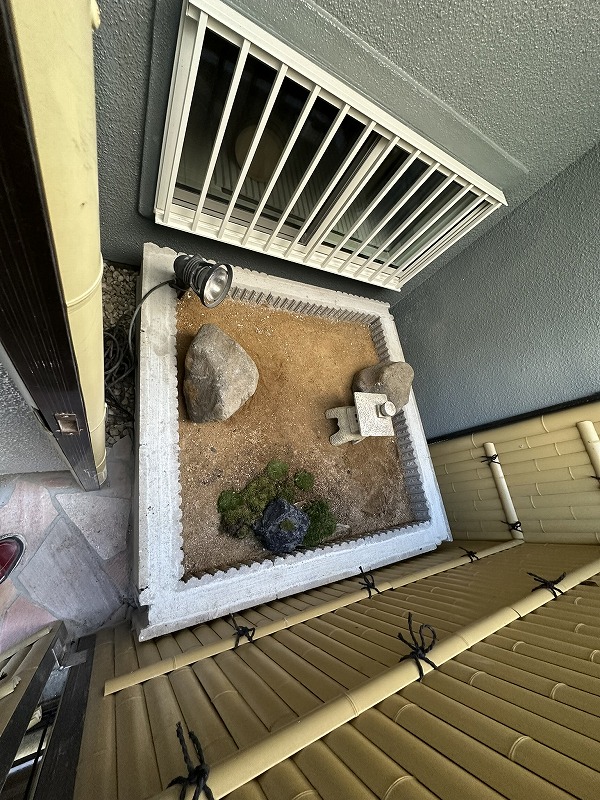 外構も「オシャレ化」をテーマに、裏庭には自動シャッターを設置するなど、利便性とデザインを両立させました。浴室の窓から眺める坪庭についても、坪庭の地面を上げてリニューアル。お客様のセンスも加わり、素敵な坪庭に生まれ変わりました。